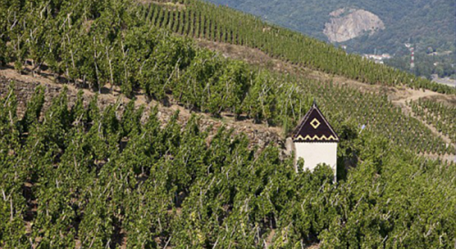 在北羅納河谷葡萄園,河流流經(jīng)之處多為狹窄的峽谷和陡峭的山坡,因此葡萄園也更多地種植在靠近河流的陡坡上。由于離海洋較遠,北羅納河谷葡萄園以大陸性氣候為主,但又多多少少會受到地中海(Mediterranean)氣候的影響,夏季炎熱干燥,冬季寒冷少雨。這里的土壤以礫石、石灰?guī)r和頁巖為主,排水性能優(yōu)越。這樣一來,種植在山坡上的葡萄藤可以更好地接收生長季充足的陽光,再加上排水性良好的土壤,有助于葡萄果實更好地成熟。北羅納河谷葡萄園著名的子產(chǎn)區(qū)羅第丘(Cote Rotie)在法語中意為“被炙烤的山坡”,就很形象地描繪了這一風土特點。