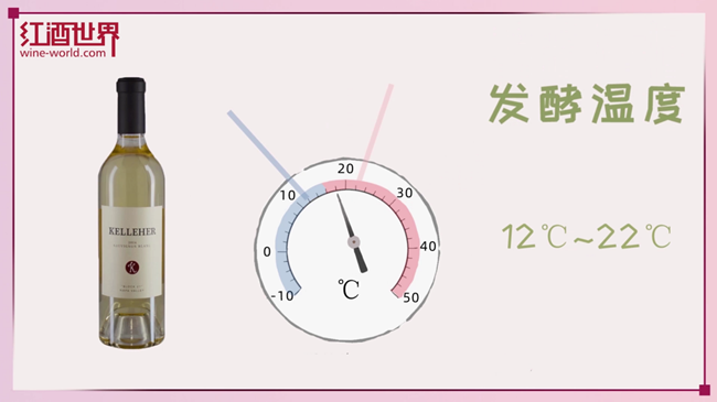 白葡萄酒的理想發(fā)酵溫度為12°C至22°C之間,因為較低的溫度可以減緩葡萄酒的發(fā)酵進程,有利于保留葡萄品種的風味特性,盡可能避免芳香物質(zhì)的流失。在較高的溫度下發(fā)酵可以使葡萄酒產(chǎn)生一些更復雜的芳香,但有可能會失去果味;在過低的溫度下發(fā)酵會給葡萄酒帶來水果硬糖的味道,也不利于展現(xiàn)葡萄品種的果味。