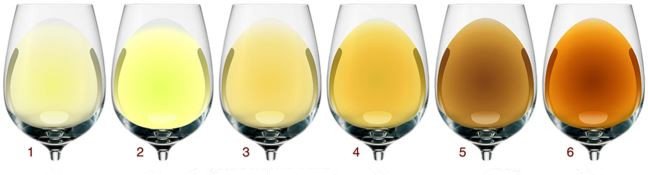 世界上部分優(yōu)秀的白葡萄酒皆能因陳年而變得更優(yōu)秀,例如部分Bordeaux Sauternes的甜白葡萄酒或Burgundy Montrachet 產(chǎn)區(qū)的優(yōu)質(zhì)白葡萄酒,已陳年后因經(jīng)微量的氧氣影響而變得偏金黃色。類似的道理,當(dāng)開(kāi)瓶后經(jīng)過(guò)一段長(zhǎng)時(shí)間氧化的白葡萄酒亦會(huì)變得啡黃色。