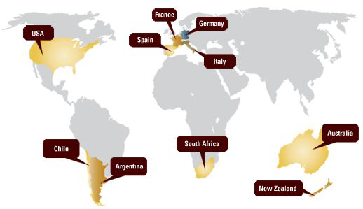 新世界葡萄酒多以機械化生產為主,現(xiàn)代化的科學技術栽培,畝產限量較為寬松,產量一般較多,采摘也多是機械化,產區(qū)命名制度(等級劃分)。