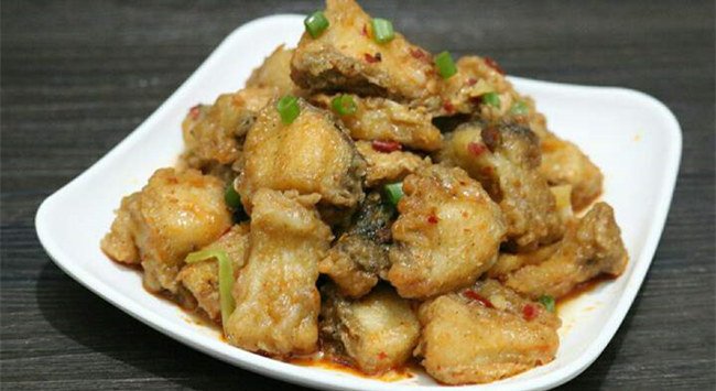 黃燜魚酥:此菜色澤金黃,外殼香酥,內含鹵汁,油潤爽口,味道鮮美配干白或桃紅葡萄酒。