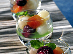 具有濃郁而新鮮的香氣的水果沙拉最適合同樣香氣四溢的葡萄酒。葡萄酒加盟人士認(rèn)為,天然甜葡萄酒和起泡酒、香檳和微沫香檳酒都能夠突出水果的清新,使得整道甜點(diǎn)的味道既爽口輕盈而又不失精致細(xì)膩。