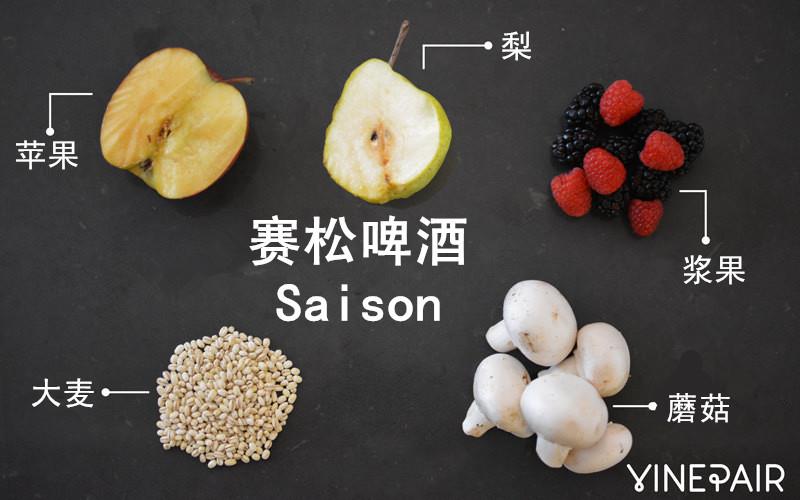賽松啤酒果味十足,包括漿果、蘋果、梨、桃子等,還帶有麥芽、大麥,甚至蘑菇的味道。