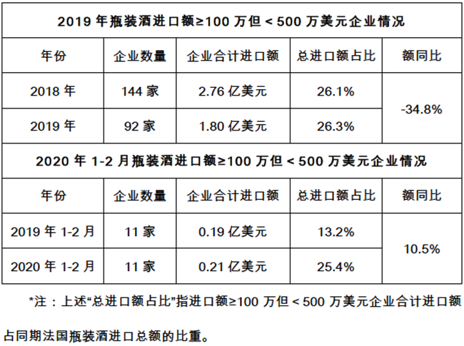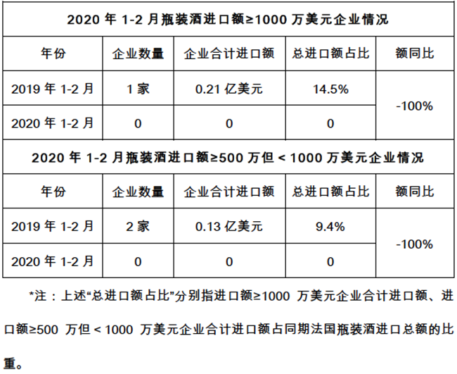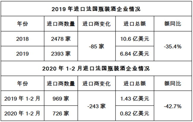 今年1-2月,市場低迷與疫情影響的雙重沖擊下,更是出現了無企業進口法國瓶裝酒超過500萬美元的慘淡開局。