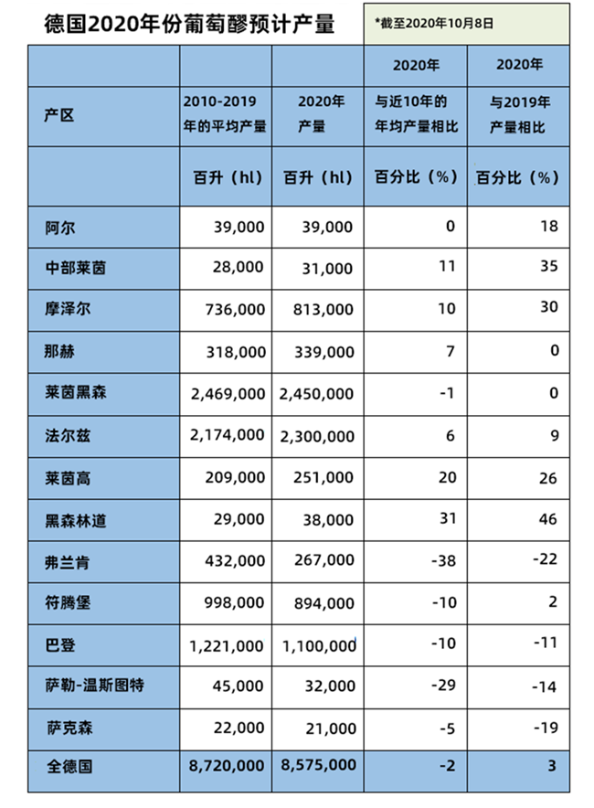 在德國全國范圍內,目前預計2020年的總產量約為8.6億升,與近10年來8.7億升的年均產量十分接近,比去年的總產量還要高出3%。