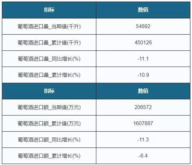 6. 1-8月葡萄酒進口量下降10.9%,進口金額下降6.4%,跌幅收窄