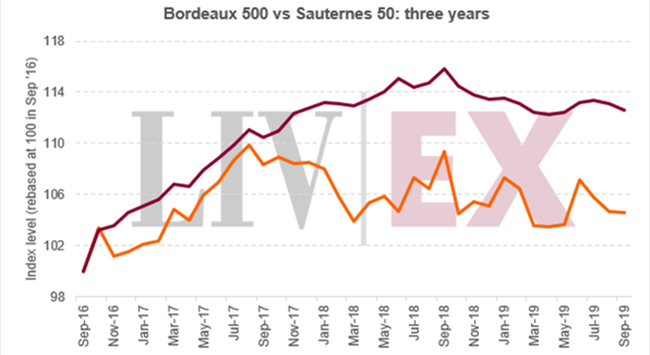 在過(guò)去三年,一向走勢(shì)緩慢的蘇玳50指數(shù)上升4.6%。同期,更廣泛的波爾多500指數(shù)則已上升12.6%。
