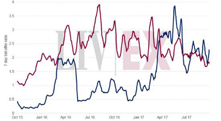 • Liv-ex的實時出價和報價總值持續(xù)不斷創(chuàng)紀錄高位,目前約在4750萬英鎊水平。即自三周前公布的新紀錄以來,又再增加了250萬英鎊。 令人鼓舞的是,出現出價和報價總值增加的酒區(qū)不只限于波爾多,而跨越了多個不同的酒區(qū)市...
