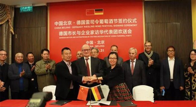 近日,德國市長與企業(yè)家訪華團(tuán)一行在圓滿完成了北京考察和調(diào)研工作后,來到王府井全聚德紫云花廳,就“德國雷司令葡萄酒節(jié)”落戶北京相關(guān)事宜進(jìn)行了座談,會(huì)后中德雙方代表還舉行了“德國雷司令葡萄酒節(jié)”簽約儀式。